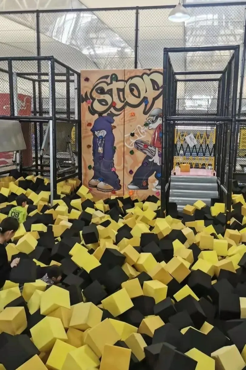 当然,大人们在这玩的也津津有味,仿佛回到了童年时光,在蹦床上一跃而起感受腾空的瞬间,放心的向后一躺,把整个身体埋进软糯糯的海绵方块中“摆烂”,别拦我,我要在这里玩一天!