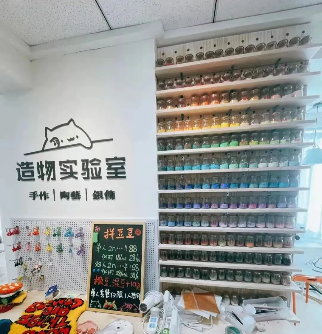 除了戳戳秀之外,他家还有拼珠、陶艺、彩绘娃娃、手机壳diy、奶油胶diy.....超多项目可以体验哦~对了!他家还有超可爱的小猫咪,快来rua秃它们!