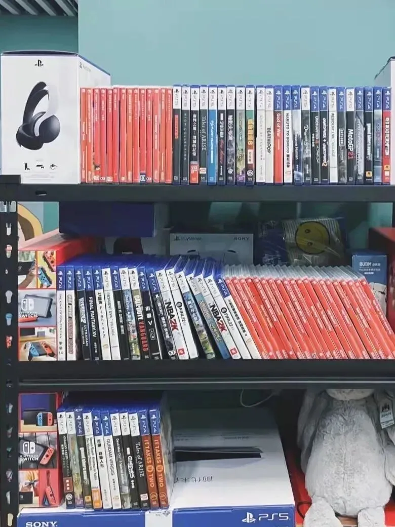门口的架子上满满当当的摆着游戏,种类超丰富,无论是单机游戏、多人合作还是角色扮演、格斗对抗又或者体感游戏,总有一款等你宠幸~