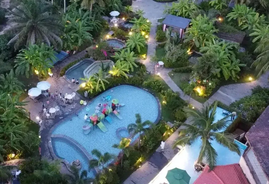儋州蓝洋温泉度假村位于儋州市兰洋镇内,邻近温泉口处,与天然氡泉氧吧连接,周边环境优雅,空气清新宜人。赏山景,听泉语,清新的大自然,让您时刻处于氧吧之中畅快呼吸!设有15个大小养生温泉泡池、儿童水上乐园、土耳其干蒸房、黑玉石养生板、亲亲鱼疗池等供不同客人所需。