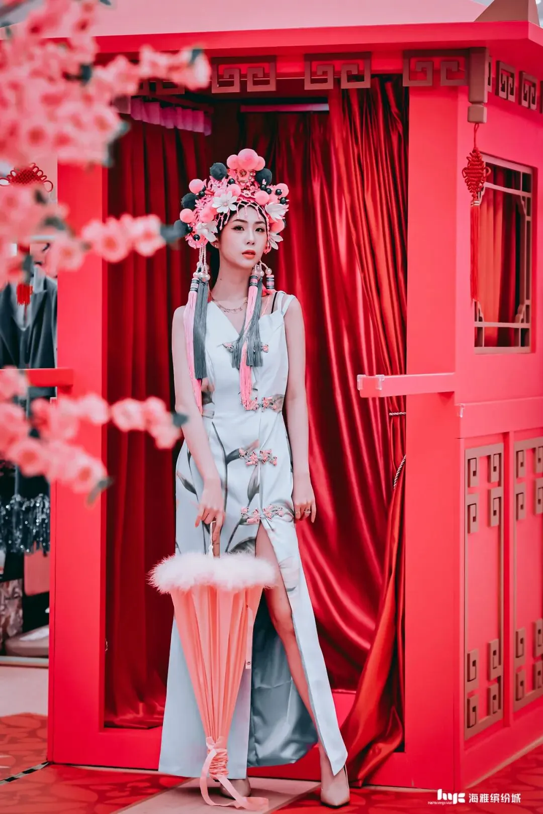 穿着旗袍站在今嬉华冠下,东方韵味蓬勃而出,这个新春用京剧装点,以国风加持,是最新潮的摩登风范!
