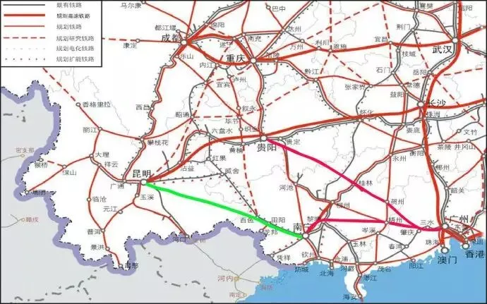 新建的云桂高铁线从南宁到达百色后,不再绕行贵州,而是从百色直接进入云南文山,直抵昆明,正线全长710公里。与老线相比,全长缩短了188公里。