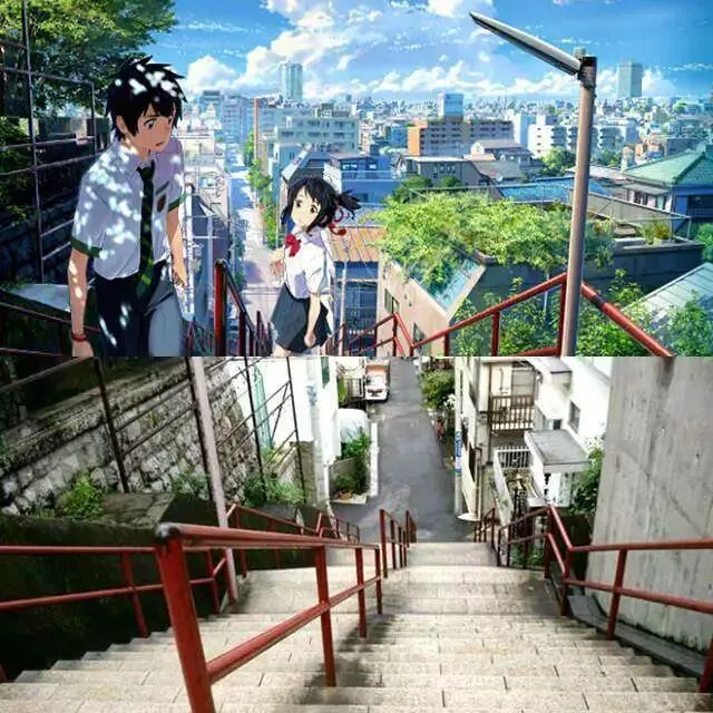 最经典的当属男女主相遇的红色栏杆阶梯了