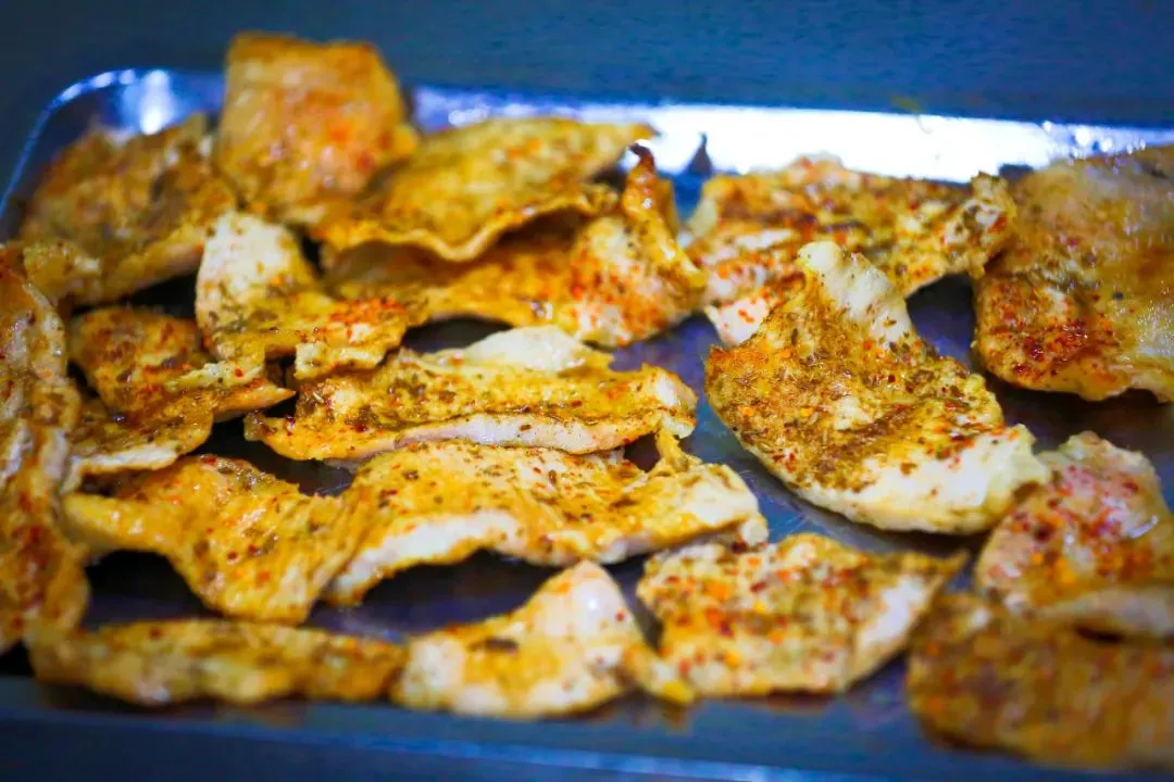 牟平烧烤花样繁多,不管是肉类、蔬菜、海鲜、主食……你想要的美食样样皆可烤!特别推荐大家一定要尝尝“腿穗子肉”,精选腌制猪腿肉,鲜嫩多汁、口感劲道,大快朵颐停不下来!