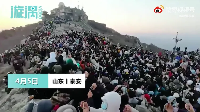 刚刚过去的清明假期,泰山山顶看日出盛况 | @头条新闻