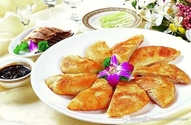 沈阳回头,一种用面粉揉好面团,用手将剂子按扁、擀平、抽薄、上馅,折叠成长方形再把两头包紧制成的清真食品,色泽金黄,皮焦馅嫩,口味鲜香。