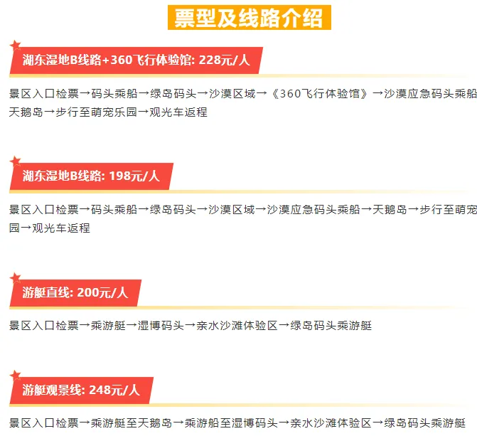 2024年所有游客购通票免门票入园,可乘坐3个代步项目:沙漠冲浪车、龙舟/摆渡车、观光车;根据您的身体状况及时间自行选择体验21个娱乐项目:八卦阵、水上乐园、游艇、水陆战车、射箭、VR体验、越野车、骑马、骑骆驼、儿童挖机、火凤凰、雷霆节拍、滑沙、滑索、观景车、亲子过山车、疯狂斗牛士、高空揽月、飞跃星球、碰碰车、沙漠亲子乐园。湿地宣教馆、黄河古渡博物馆、民俗馆可免费参观。