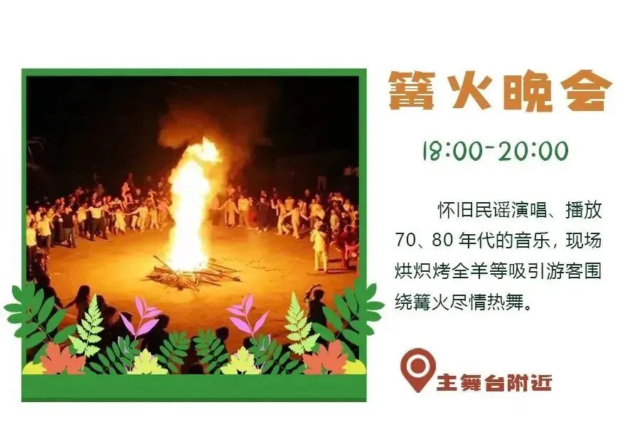 文艺演出、篝火晚会、窑洞婚礼情景剧展示,青年交友活动,非遗文化展示、传统中式婚礼展示。