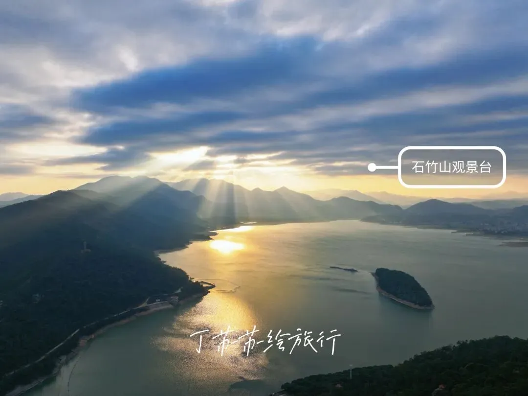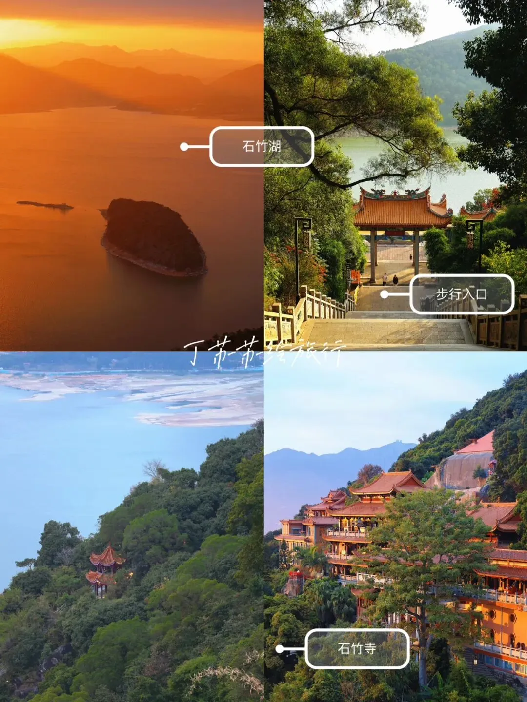 🦅石竹湖:即东张水库,位于山脚,可泛舟、骑行环湖,欣赏湖光山。