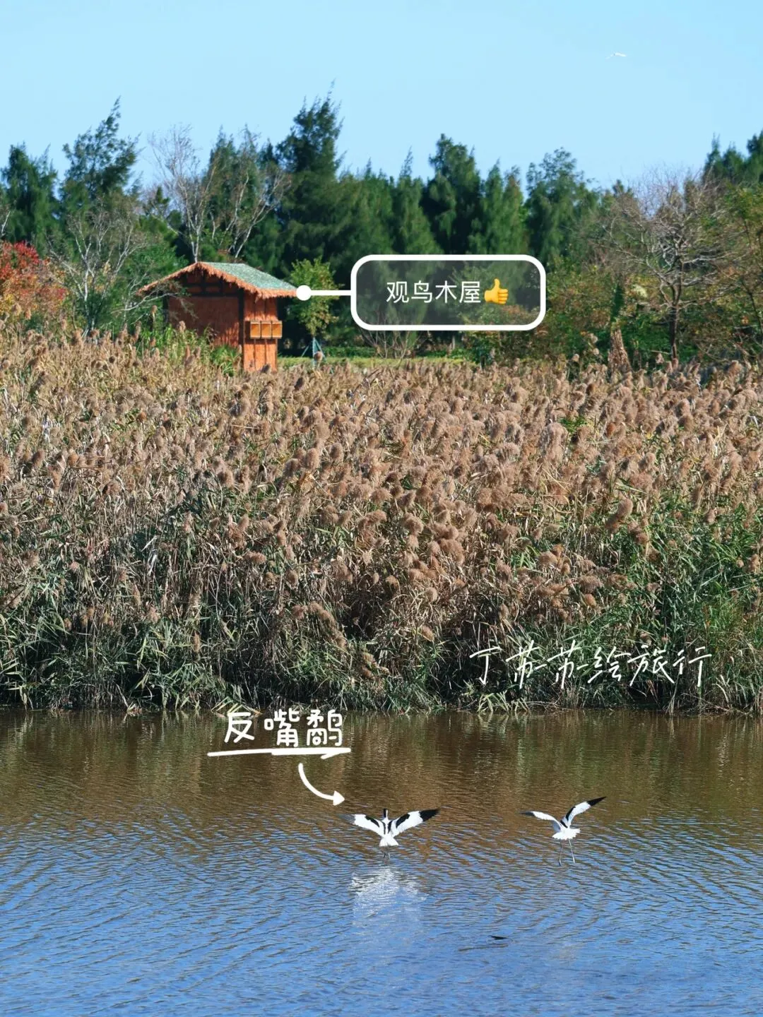 • 砥砺观光道:沿途可观赏湿地风光,南侧能看到生态鸟岛,还有各种湿地和水鸟相关科普宣传牌。