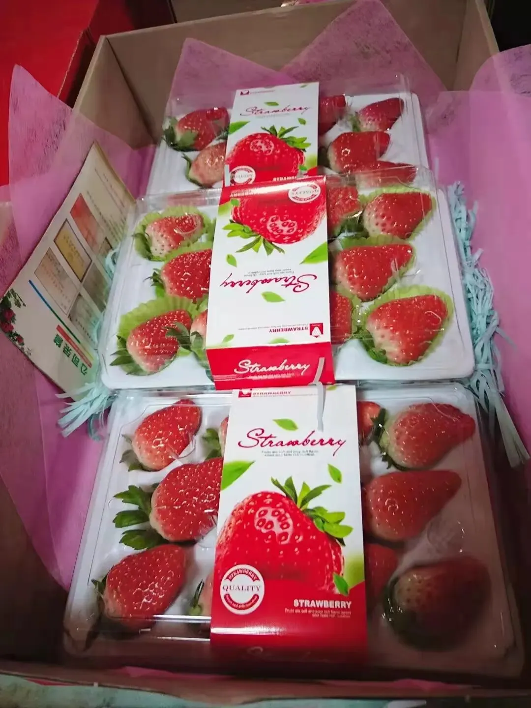 草莓品种:奶油、巧克力、宁玉、章姬、雪兔等,省级绿色食品