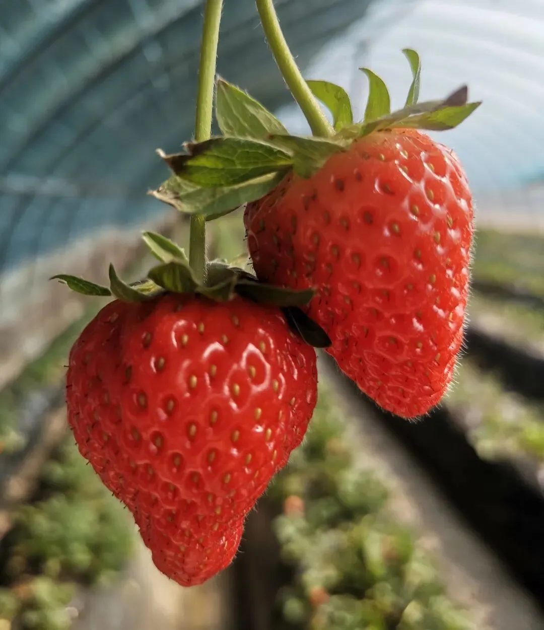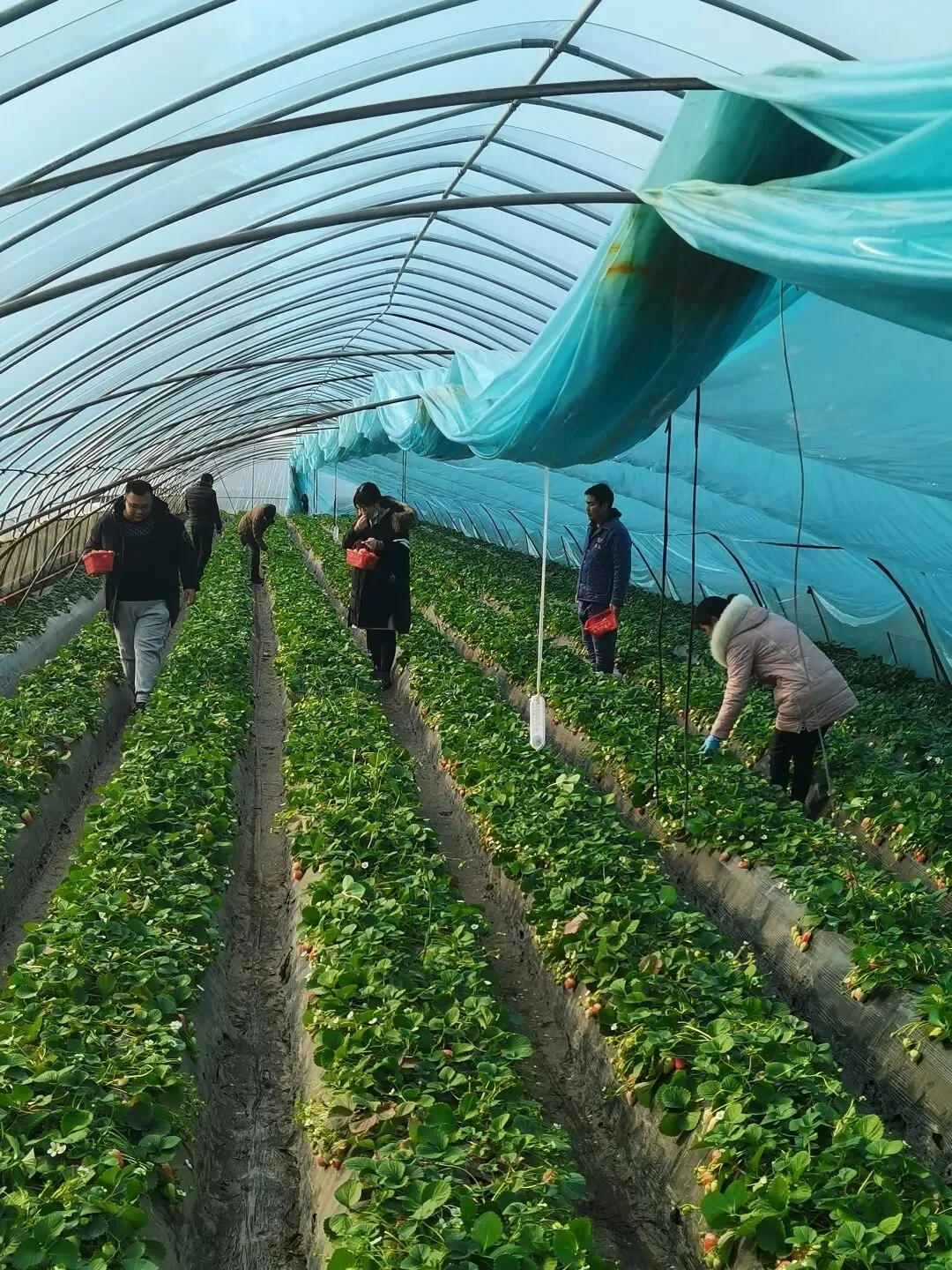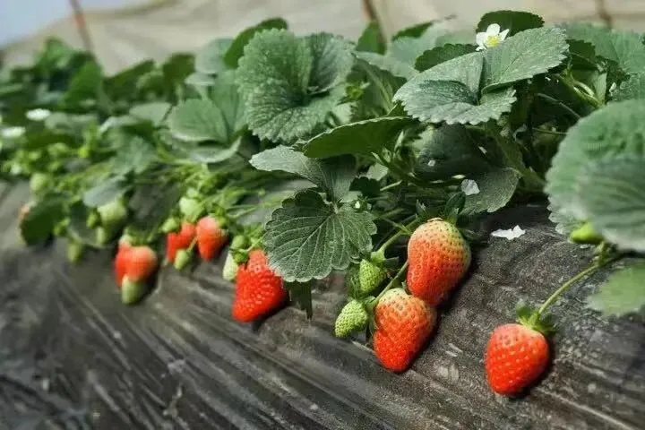 草莓品种:章姬、宁玉(冷棚温差大,草莓口感更好)