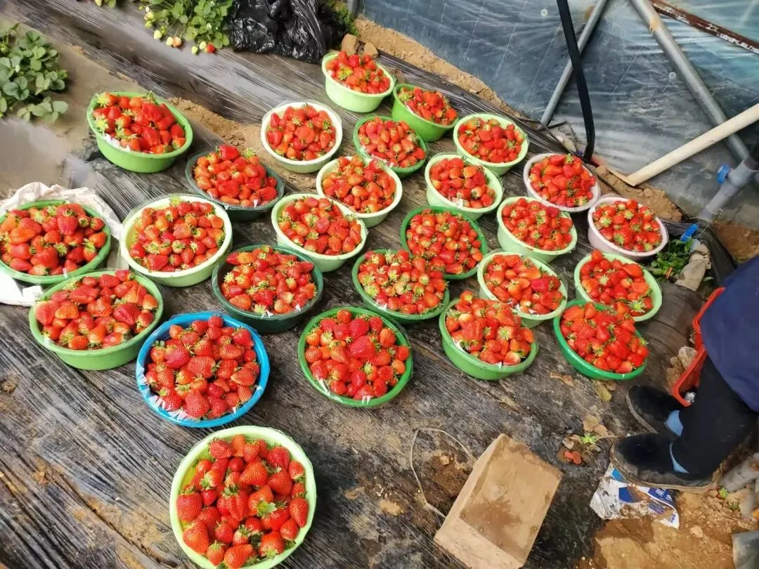 草莓品种:主基地30个品种,章姬、宁玉、红颜等,其“红颜草莓”被推介为全国名、特、优、新产品