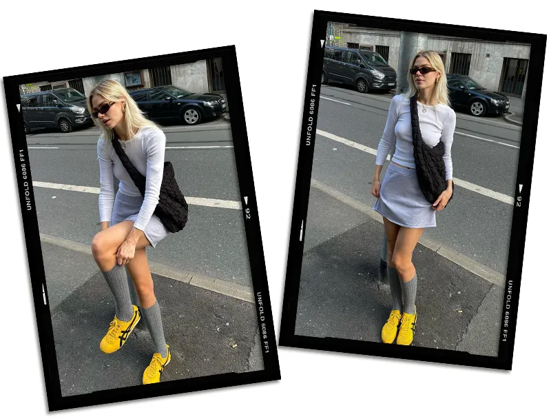 紧身短上衣非常百搭,和裤子裙子都妥妥适配,再搭一双长袜和运动👟,又吸睛又有层次感。