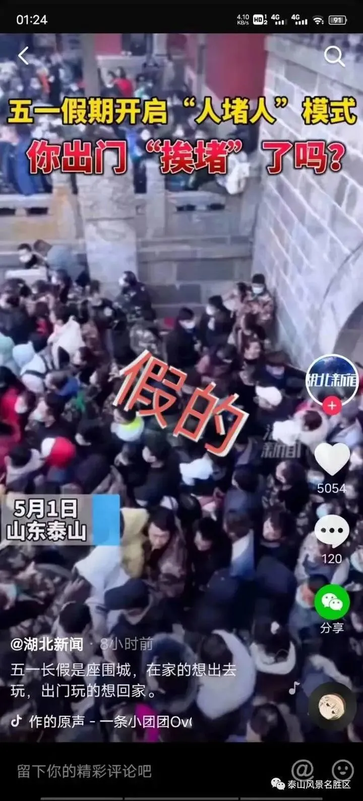 泰山景区:假的!假的!假的!在此,我们呼吁有关新闻媒体、自媒体及有关信息发布管理平台,坚决杜绝和抵制虚假、欺骗、误导信息的发布、流传,共同营造清朗、健康、文明的网络空间,为广大游客提供一个真实可信的出行宝典!