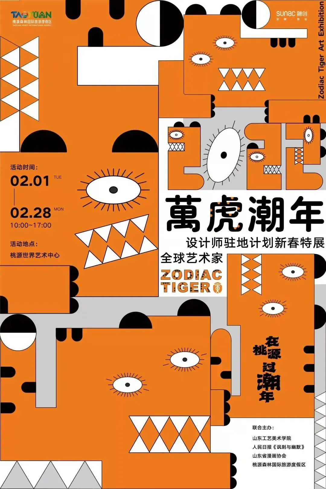 作为桃源森林国际旅游度假区全球艺术家驻地计划,万虎潮年新春特展吸引了400个国内高校及30个国家和地区的国际特邀设计师参与,共征集6500件作品。本次精选100份作品展陈,定制虎年“潮展”大戏。