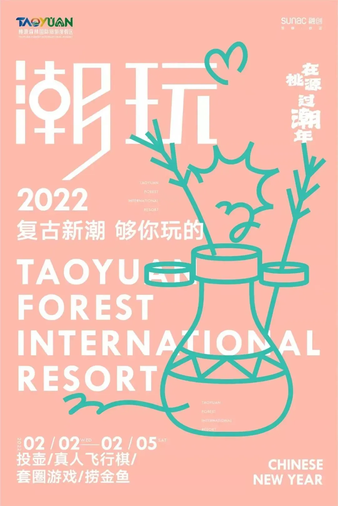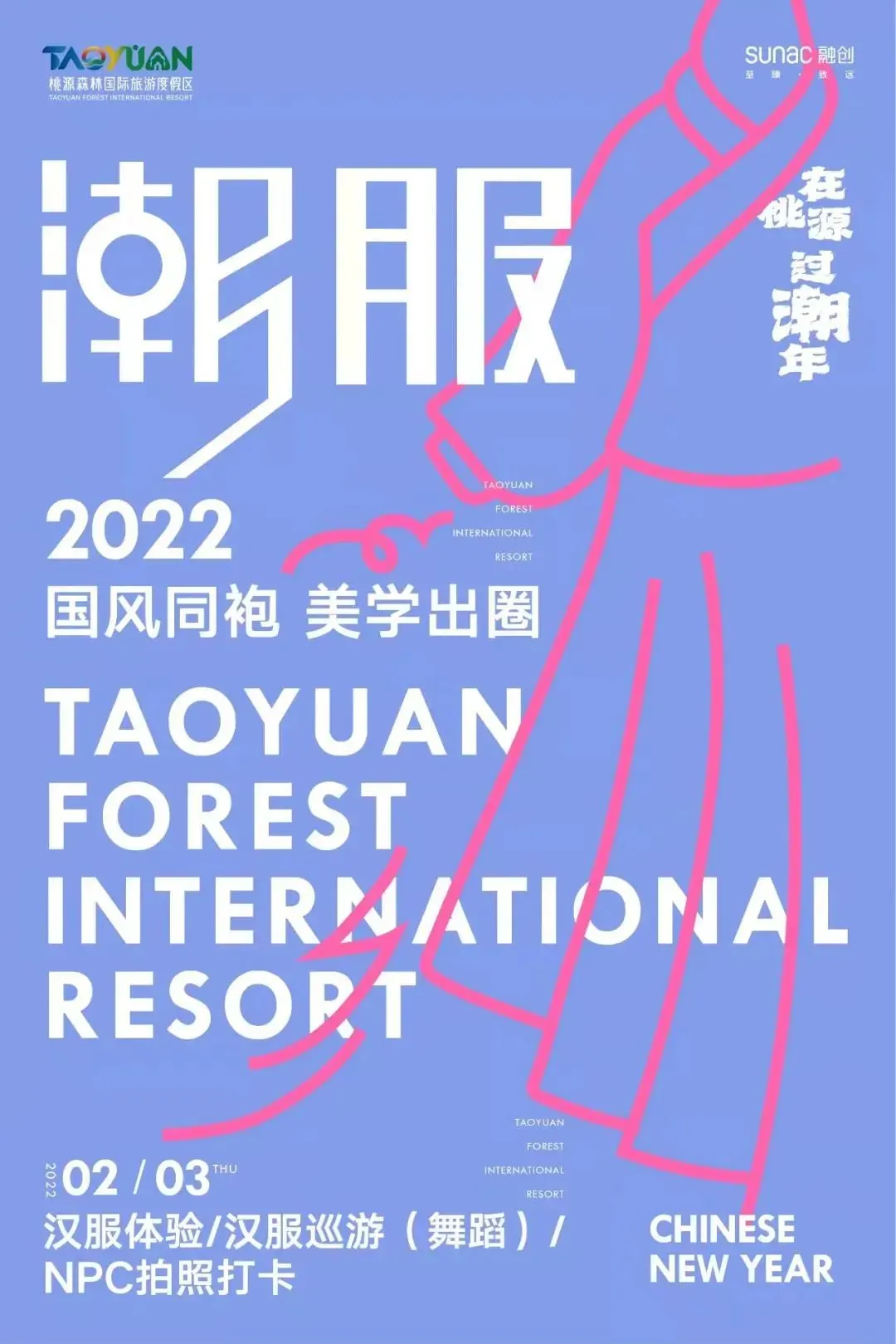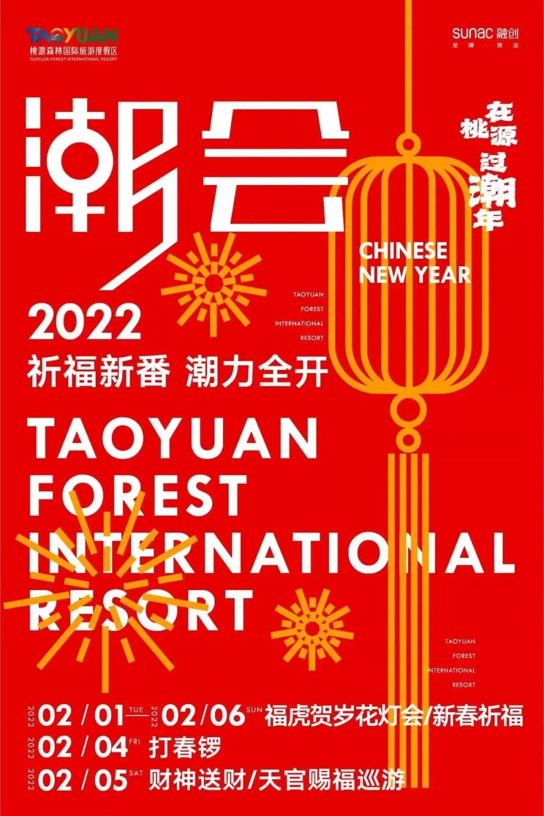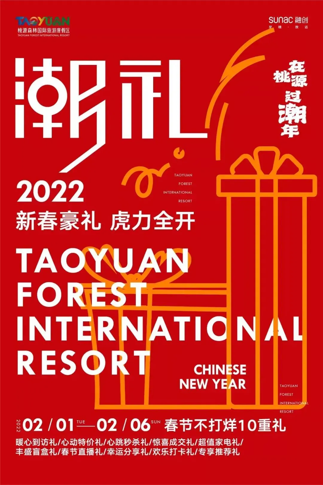 2月1日至2月6日,农历大年初一至初六,世界旅游度假目的地桃源森林国际旅游度假区,春节上映10大定制潮年主题,同步推出3大定制潮玩路线,带你体验与众不同的虎年春节,开启潮玩新境界。