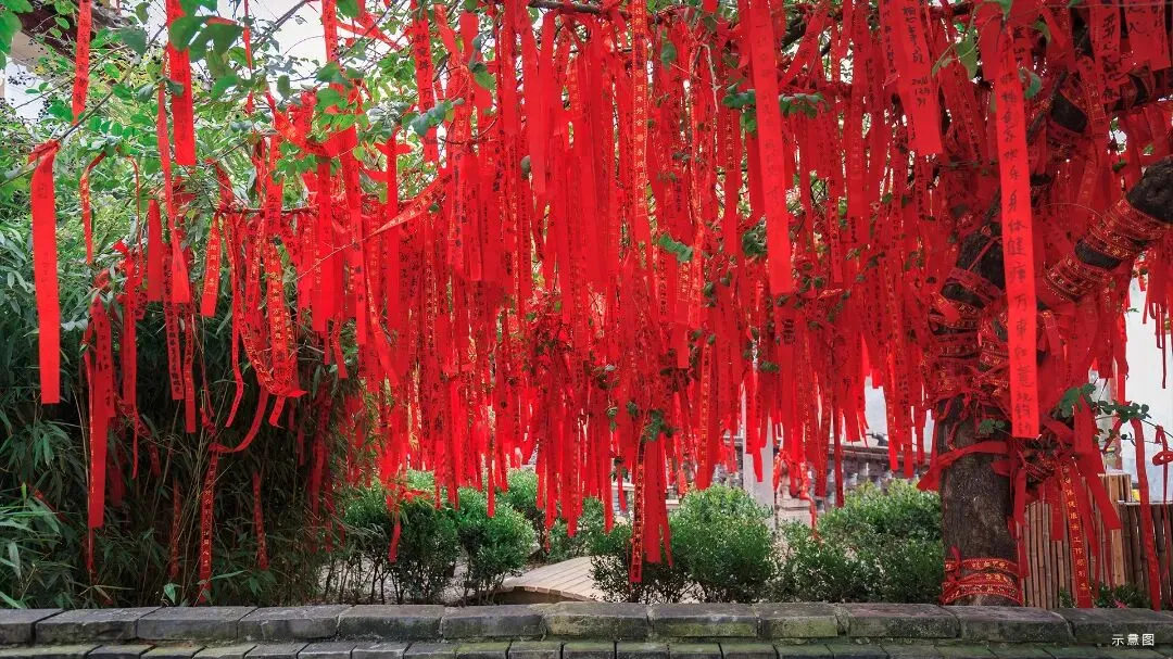 在桃源树龄最长的祈福许愿树上,挂上写下新年愿望的福袋,对过去一年的烦恼say bye,对新年的美好say hi!