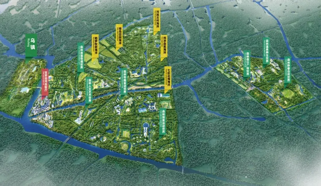 桃源森林国际旅游度假区,位于国家级长三角一体化示范区核心位置,沪苏杭黄金旅游中心交会点,紧邻中国六大古镇-乌镇景区。
