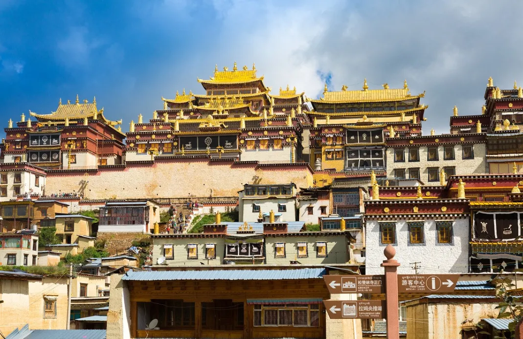 - 松赞林寺:感受藏传佛教的庄严神秘,寺庙建筑宏伟壮观,在蓝天白云的映衬下,宛如一座圣洁的宫殿。