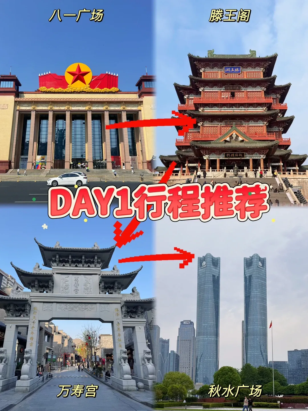 📅 Day1 老城烟火+跨年夜狂欢 ✅08:30 冲大士院早餐街 3.5r拌粉+皮蛋肉饼汤直接封神!记得穿舒服鞋子,早市人超多! ✅10:30 逛八一馆+八一广场 免费参观! 10点有免费人工讲解,沉浸式感受红色历史,拍照也很出片~ ✅12:30 干饭羊子两室一厅 24年老赣菜馆!必点红烧鸡爪(一抿脱骨)+油浸鱼,人均50+吃到扶墙出,跨年聚餐氛围超足🍻