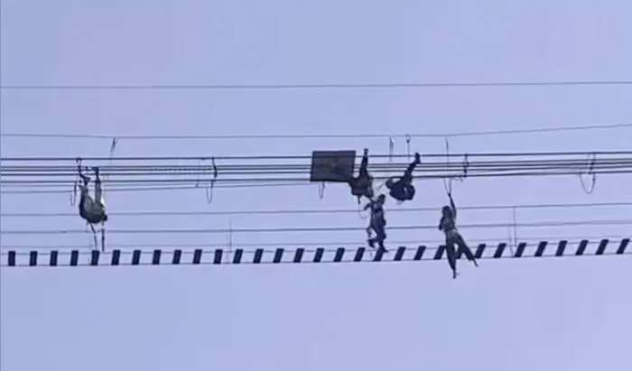 有多名游客"倒挂"半空