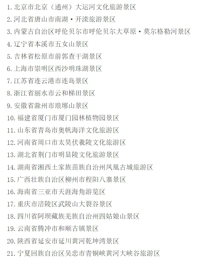文化和旅游部2月6日发布公告,确定北京(通州)大运河文化旅游景区等21家旅游景区为国家5A级旅游景区。
