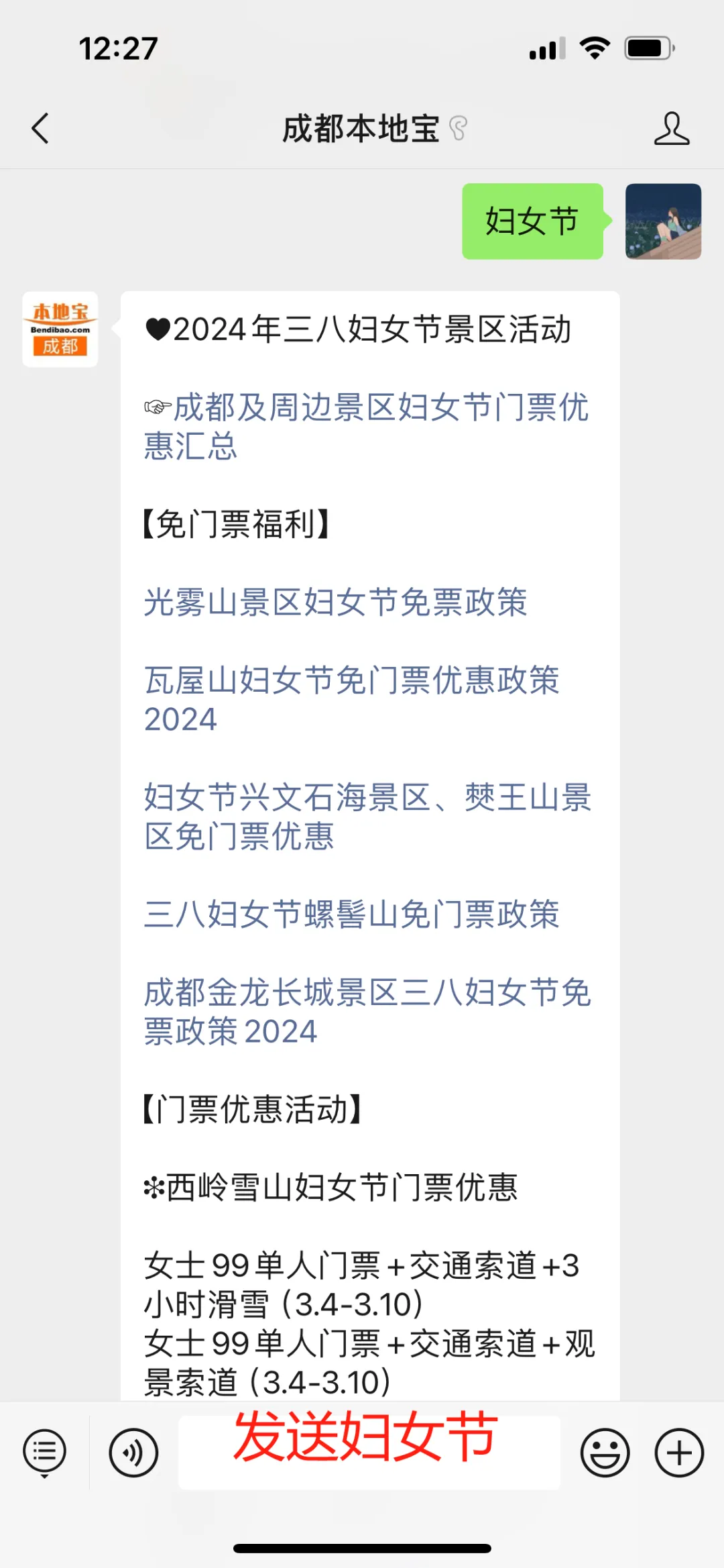购票入口:进入【成都本地宝】公众号,在对话框回复【西岭雪山】直接获取预约购票入口、游玩指南。
