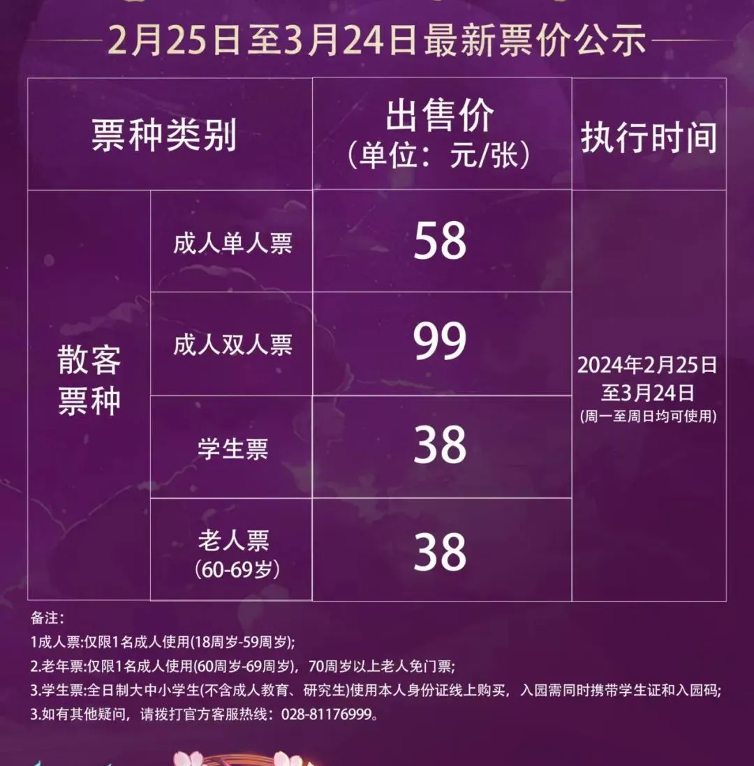 门票价格:2024年3月8日至3月10日,女性入园门票仅售38元