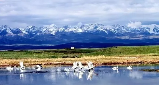 巴音布鲁克草原位于天山南麓中部的山间盆地中,四周雪山环抱,是中国第二大草原。巴音布鲁克,蒙古语的意思是“永不枯竭的甘泉”。著名的天鹅湖就坐落在这片草原上。每逢春季,冰雪解冻,春暖花开之时旅居在印度、缅甸、巴基斯坦,甚至远到黑海、红海和地中海沿岸诸国的大天鹅,不远万里,成群结队地飞到巴音布鲁克栖息繁衍。广阔无垠的草原,珍珠般散落在草原上的白色羊群,加上远处蓝天下的雪山,给人一种大气开朗的感觉。走上一段长长的草坡,眼前便是一幅如画的风景:细长的蓝色河流,弯弯绕绕地伸延到远方。这便是九曲十八湾了,开都河的源头,成就了草原的丰美富饶,也孕育了新疆最大的湿地!