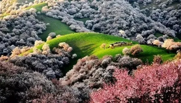 伊犁的野杏花是中世纪遗留下来最大的原始野杏林。春意盎然之时,初绿的山腰沟谷之间,成簇成簇的野杏花竞相开放,被鲜嫩的、淡淡的粉色所渲染,弥漫着明朗而新鲜的气息。开花的野山杏树一身雪白或粉红,似少女,似精灵,绽放在大地的绿衣上,即有大气磅礴的场面,又有形单影只的妩媚。几公里之外,都能闻到清新的杏花香味。携手走入杏花沟,每一步都仿佛步入奇幻世界,你一定会被这胜似仙境的春景所倾倒。