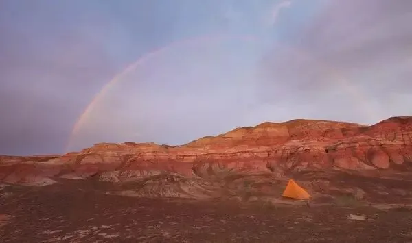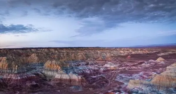 五彩城又称五彩湾,位于古尔班通古特沙漠东部的吉木萨尔境内,是因其五彩缤纷的雅丹地貌特征而得名。走进五彩城就像回到远古时期,大大小小形态各异的的岩石包,光怪陆离的色彩从四面八方向你涌来,怪异、神秘且壮美,活脱脱一个属于武侠小说的传奇大地。电影《卧虎藏龙》也是在这里取景。站在高处,举目远眺,眼前的荒凉且壮观绮丽的自然景观让人不得不感慨自然的神奇,也不得不敬畏自然之力量。五彩城地形地貌高低起伏,奇峰怪岭千姿百态,或蜿蜒如巨蟒,或玲珑似宝塔,有的酷似堡垒、殿堂、亭阁、金字塔,山坡上布满道道沟壑,绚丽多姿,给人耳目一新之感。