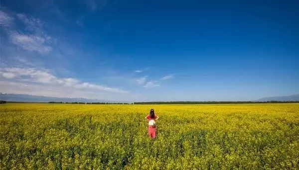 天堂很远,昭苏很近。昭苏,天马之乡,处于中国与哈萨克斯坦的边境城市,也是新疆最西边的城市。昭苏的自然景观和人文景观非常丰富,草原石人,夏塔古道,细君公主墓,木扎尔特冰川,油菜花田等。草原上的油菜花十分壮观,盛开时节犹如一条条金色的织毯席卷着广袤无垠的昭苏大草原,与天山遥相辉映,油菜和紫苏交织在一起,编织着最美丽的人间天堂。蓝天白云下,置身于这律动着的金色海洋,心旷神怡。