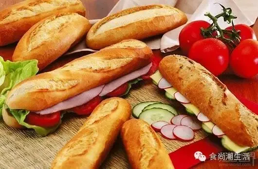 长棍面包(Baguettes) 世界上应该没有哪种面包可以与这种新鲜出炉的长棍面包相媲美了。法国人认为,这种长棍面包的味道是神圣的,而如果将它简单地称作“面包”,简直就是对法国饮食文化的侮辱。在法国,人们习惯每天都买面包吃,所以,他们总是能吃到最新鲜的面包。