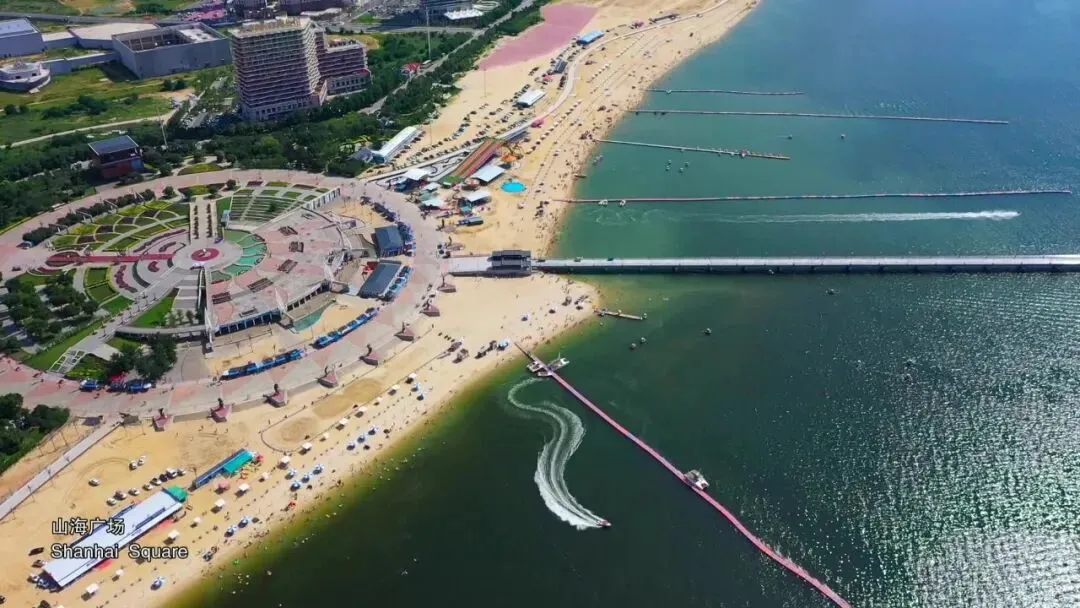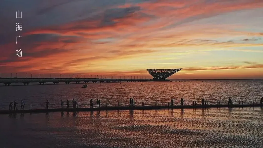 第二站 山海广场赶海 在这里成为大广场之前 曾是月牙湾海滨浴场和金沙滩海滨浴场 海边沙质细腻 提前看好潮汐表退潮时间 拿上小桶和铲子来沙滩挖蚬子、钓蛏子 如果是亲子家庭