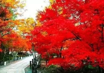 今年的北京的香山红叶景观已在10月底大面积出现,因此从11月开始持续到月底都是漫山的红叶开得最夺目的时节,满山遍野的红枫鲜艳的色彩,充满了生命的张力。香山上最佳的赏红叶的地方要数西山的香炉峰,而香炉峰上的三座古色古香楼阁中,又以紫烟亭的景色为最佳,在这可以看到整座香山被红枫点缀得亮丽夺目,亭台楼阁隐藏在红枫的怀抱里,明媚的秋阳映照下,红叶闪亮着霞彩一样的朦胧色彩笼罩着整个香山古朴雅致的神韵。放眼东望色彩斑斓的枫林深处昆明湖波光荡漾,紫禁城影影绰绰,各式建筑星罗棋布,景致迷人。沿着古老的石板小道步行下山的时候,穿梭在枫树林间,头上枫荫像一片金灿灿的明霞,呼吸着枫叶散发出来淡淡的清香,看着阳光被枫叶滤过的光斑在古朴的石道上面活泼地跳跃着。