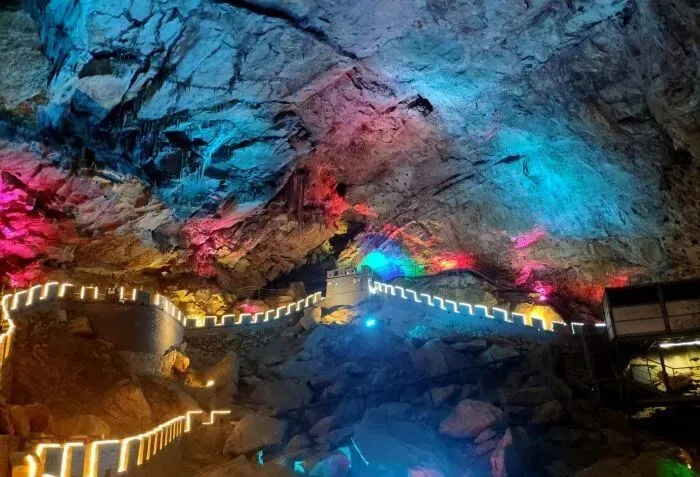 这里得洞内有八大离奇景观,称为”八奇洞“,顺着比直的台阶路下到410米深的洞底会觉得别有洞天。