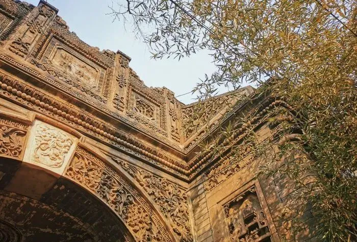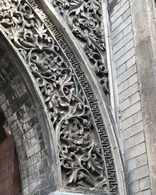 这里最值得一看的就是拱门砖雕,这个砖雕是在院子里的,原本是广州将军凤山宅邸的二进院大门。