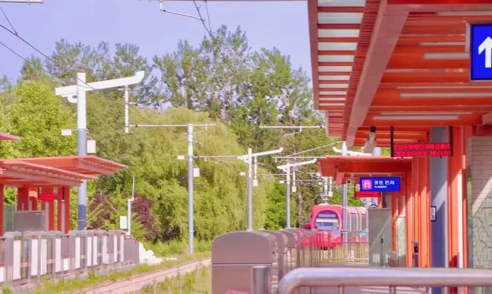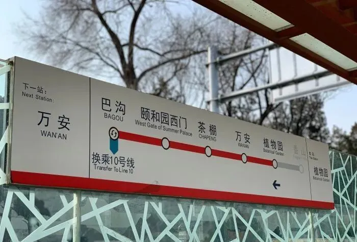 这里是地铁西郊线,巴沟站至香山站,票价全程4元,路过颐和园西门,茶棚、万安、植物园,终点香山站。