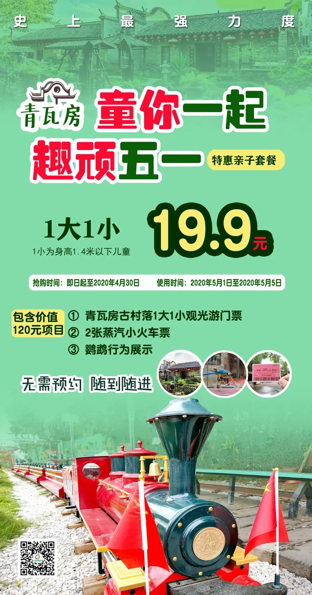 点击↙左下方“阅读原文”链接,青瓦房五一特惠亲子套餐(1大1小),19.9元限时限量抢购!