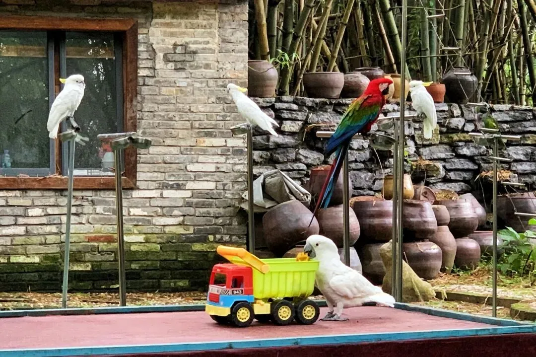 我们都知道鹦鹉是很聪明的小动物,那你亲眼见过它投篮和举重吗?这里还有会画画的小鹦鹉呢!