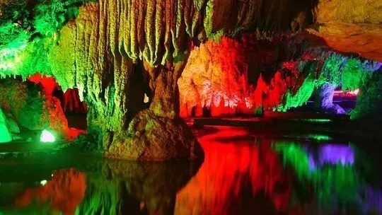 万华岩洞穴系统主、支洞已探明长度超过9千米,是一个流域面积为28.5平方千米的地下河洞穴系统。景区内有大型的地下河洞、溶洞,洞内石景别致,洞中三大瀑布神秘莫测令人神往,洞外自然风光优美,洞内冬暖夏凉,空气清新流畅。溶洞内景观鬼斧神工,洞中有洞、洞连洞、洞穿洞,处处晶莹剔透。钟乳石随处可见,似万树千花、水底龙宫、千姿百态,精彩纷呈,洞中的“水下钙膜晶锥”之景,全世界只有两处可见,每百年才长一厘米,堪称世界奇宝。2000年发现的“石蛋生笋”,为目前世界上首个,当属无价之宝。