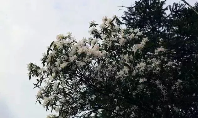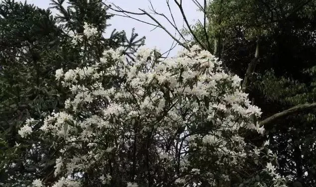 它洁白似雪、整个片区又像换了一身银装,一坡坡白杜鹃,如蝴蝶般翩跹的白杜鹃花