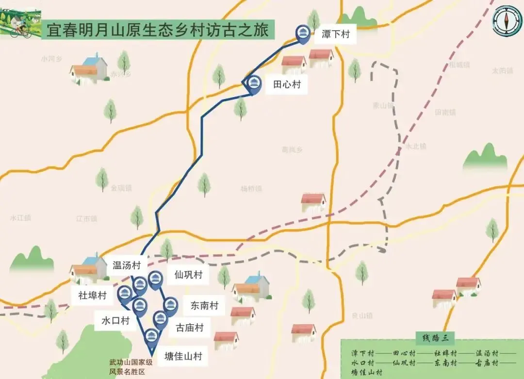 潭下村——田心村——社埠村——温汤村——水口村——仙巩村——东南村——古庙村——塘佳山村