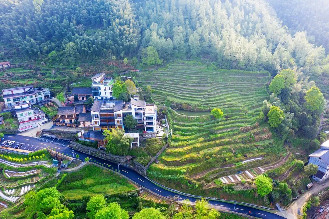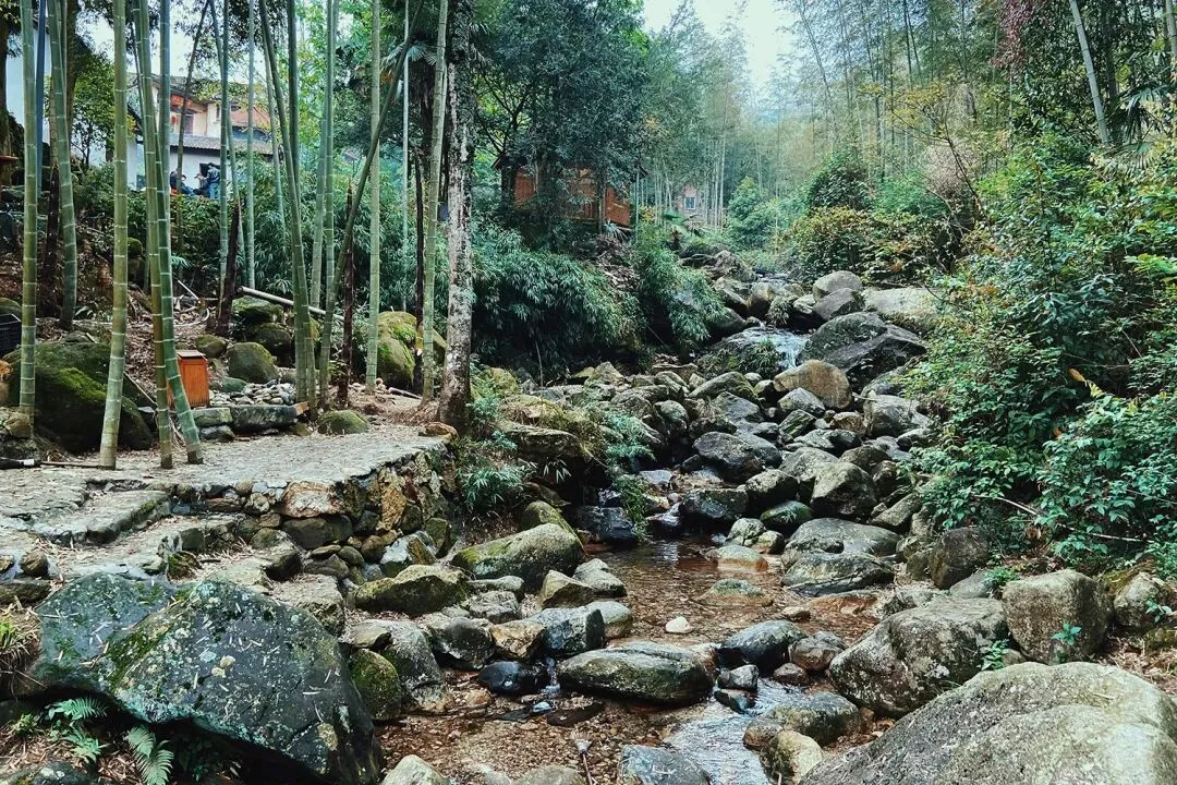 依山而建,临水而居,千年古银杏、竹林、茶园、村庄、远山,共同构建了一个远离喧嚣的世外桃源。沿着溪流赏竹林,观古树、古屋民居、石桥古祠,在原生态古村落寻找久违的宁静平和。