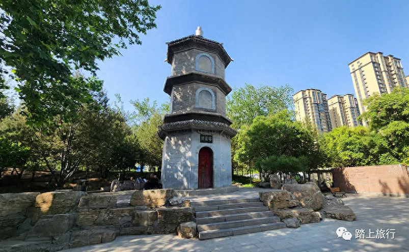 石刻园,前身为红旗公园,坐落在三面环水的柏坡岭上,以先秦以来具有代表性的石刻艺术品为主要景观,分为文字石刻区、石建艺术区、观赏雕塑区和古文物区,生动地展示了当地悠久的历史文化和石刻艺术。该园汲取了古典建筑和南方园林的特点,碑廊迂回,廊榭错落,园内亭、塔相依,碧水相映,绿树成荫。