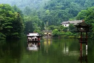 双流县黄龙溪古镇有着2100多年的历史,清代风格的街肆建筑仍然保存完好。青石板铺就的街面,木柱青瓦的楼阁房舍,镂刻精美的栏杆窗棂,无不给人古朴宁静的感受。镇内还保存有镇江寺、潮音寺和古龙寺三座古寺。