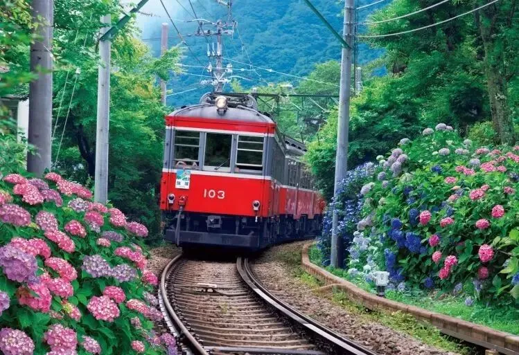 从海拔差211米的强罗车站到早云山站之间,一口气直线攀登上山,全程约1.2公里的距离,所需时间大约10分钟。从电车最后方的座位俯瞰下方,可以清楚看到陡峭的坡面,一览无遗。