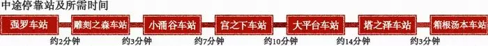 时间:东京站-小田原站:50-55分钟;小田原站-箱根汤本:15分钟