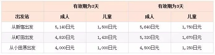 乘坐小田急高速巴士的票价:从“新宿-御殿场站-箱根”,全程票价1950日元。如果有周游票,则仅需购买新宿-御殿场之间的车票,可以在车内购票,或者在新宿巴士站前的小田急高速巴士信息服务中心购票。